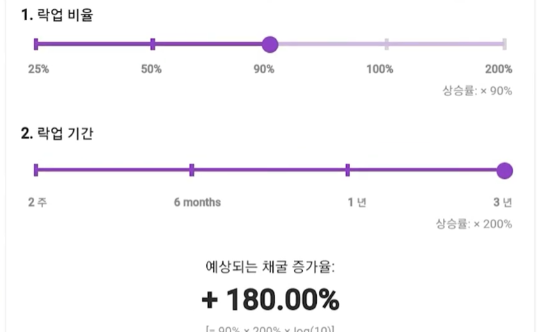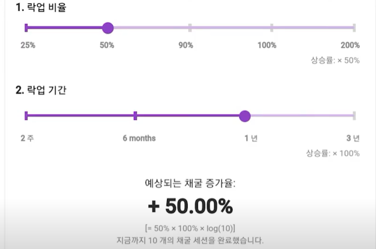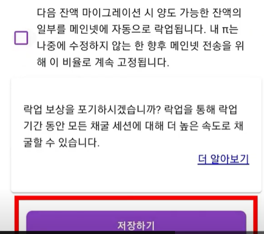 - 설정 화면에서 선택한 비율과 기간에 따른 예상 채굴 증가율을 바로 확인할 수 있습니다.
