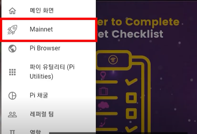 1. 파이코인 앱 접속 및 메인넷 메뉴 진입