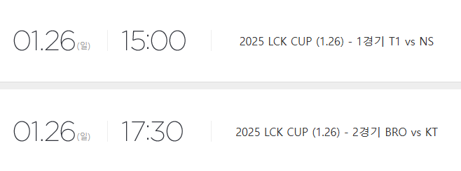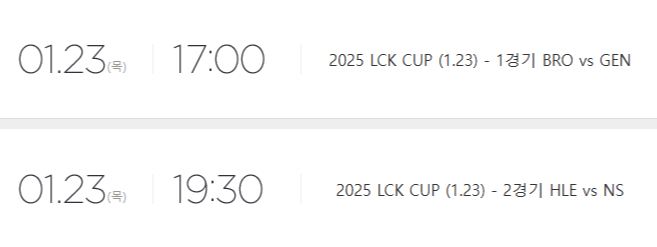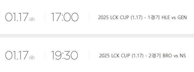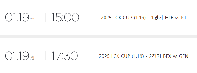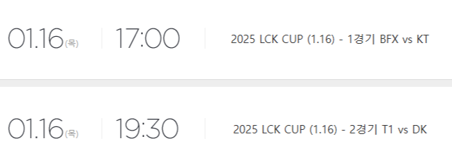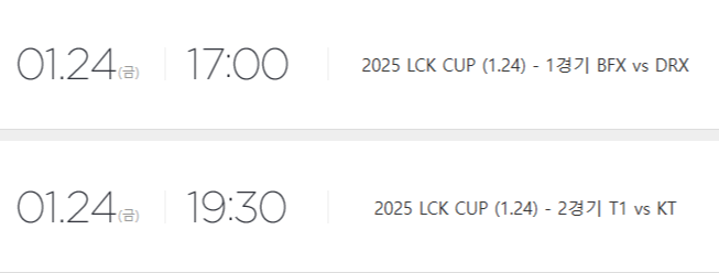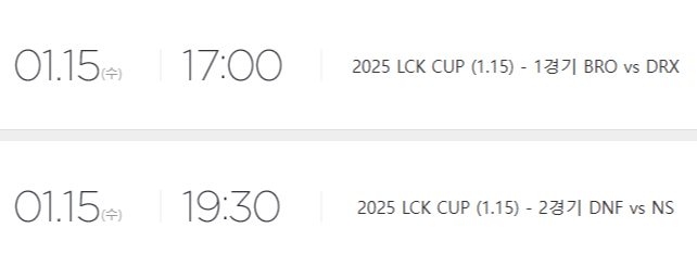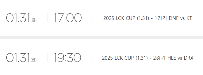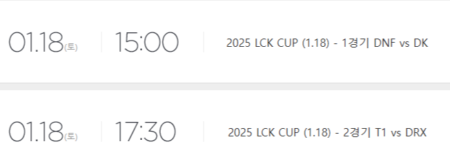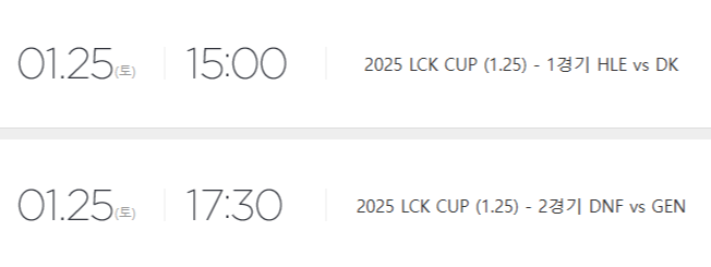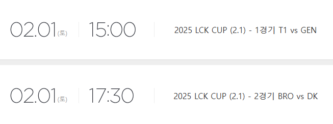 2025 LCK 컵의 경기 일정은 다음과 같습니다