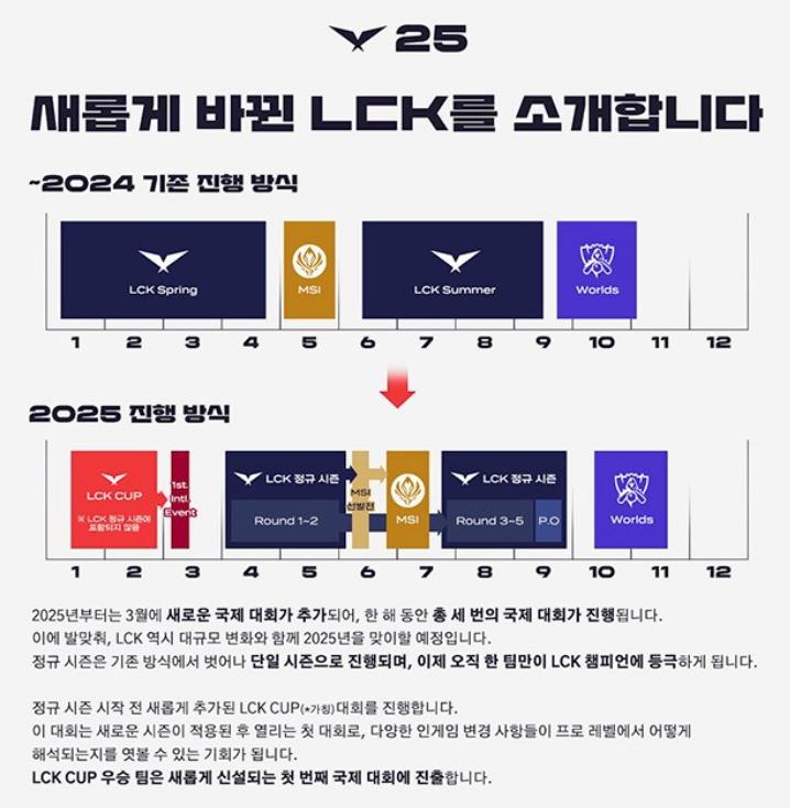 - 단일 시즌제: 기존 스프링/서머 스플릿에서 연간 단일 시즌으로 변경